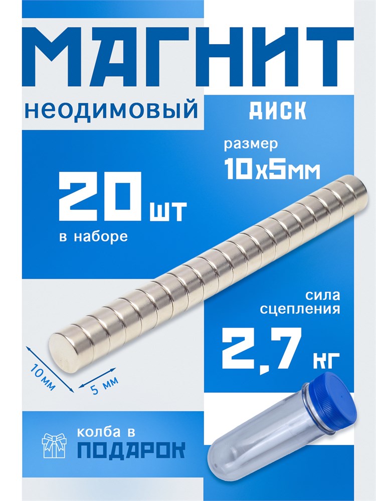 Сильные неодимовые магниты-диски диаметром 10 мм и толщиной 5 мм (класс N38) подходят для множества задач: от технических и производственных до творческих и бытовых решений. Компактный и одновременно мощный формат в сочетании с удобной упаковкой из 20 штук в прочной пластиковой тубе обеспечивает простоту хранения и надежную защиту магнитов от повреждений и потери.